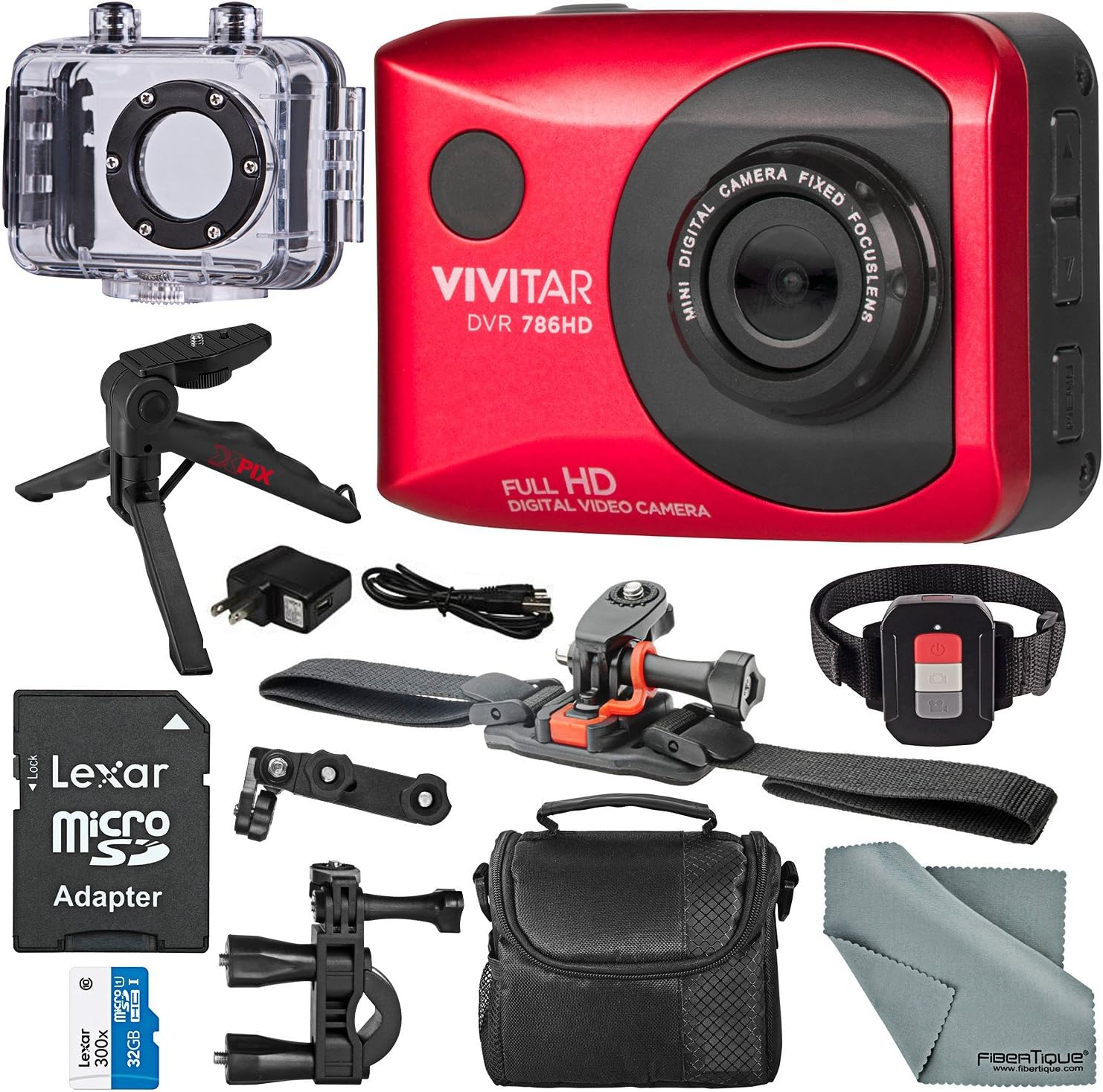 Amazon Com Vivitar Dvr786 Full Hd Waterproof Action Camera Red Accessory Bundle With Xpix Tripod 32gb Case Fibertique Cloth Electronics